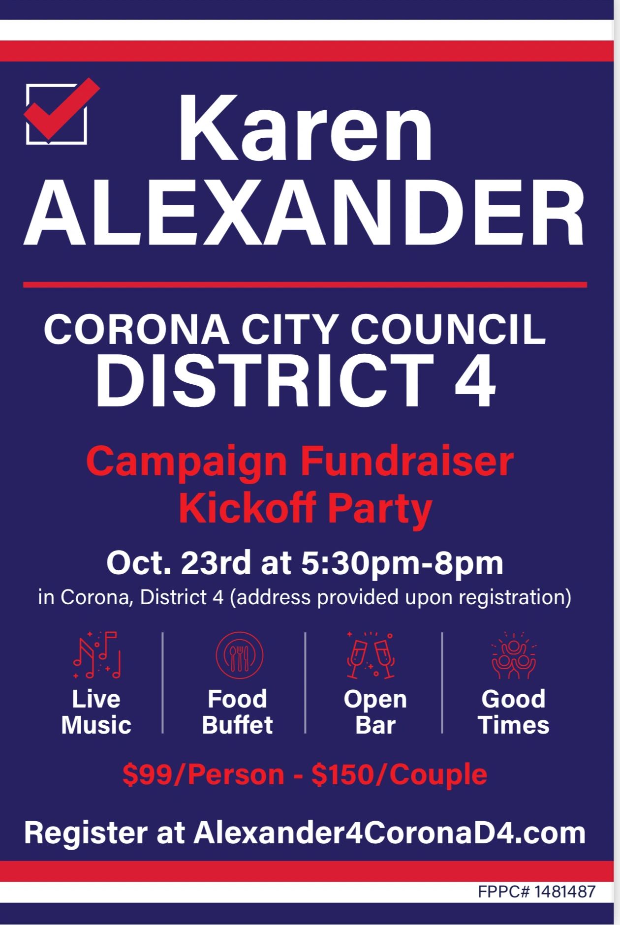 Paid for by Karen Alexander for Corona City Council - FPPC#1481487